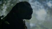 Two tracking hounds are sent with a group of Bolton men to find and retrieve Sansa and Theon after they escape Winterfell. Though Sansa and Theon cross the river to throw off their scent to stop the hounds tracking them, they are found regardless, but Brienne and Pod intervene and rescue Sansa and Theon. The hounds, not bred for combat like their larger and more muscular counterparts, are either killed or driven off by the fighting.